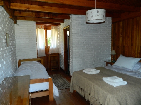En total disponemos de capacidad para 35 huéspedes ofreciéndoles habitaciones singles, dobles (twn – mat) y departamentos de dos habitaciones ( una con cama matrimonial y otra con dos o tres camas que son los más solicitados por matrimonios con niños que deban dormir cerca de sus papás).